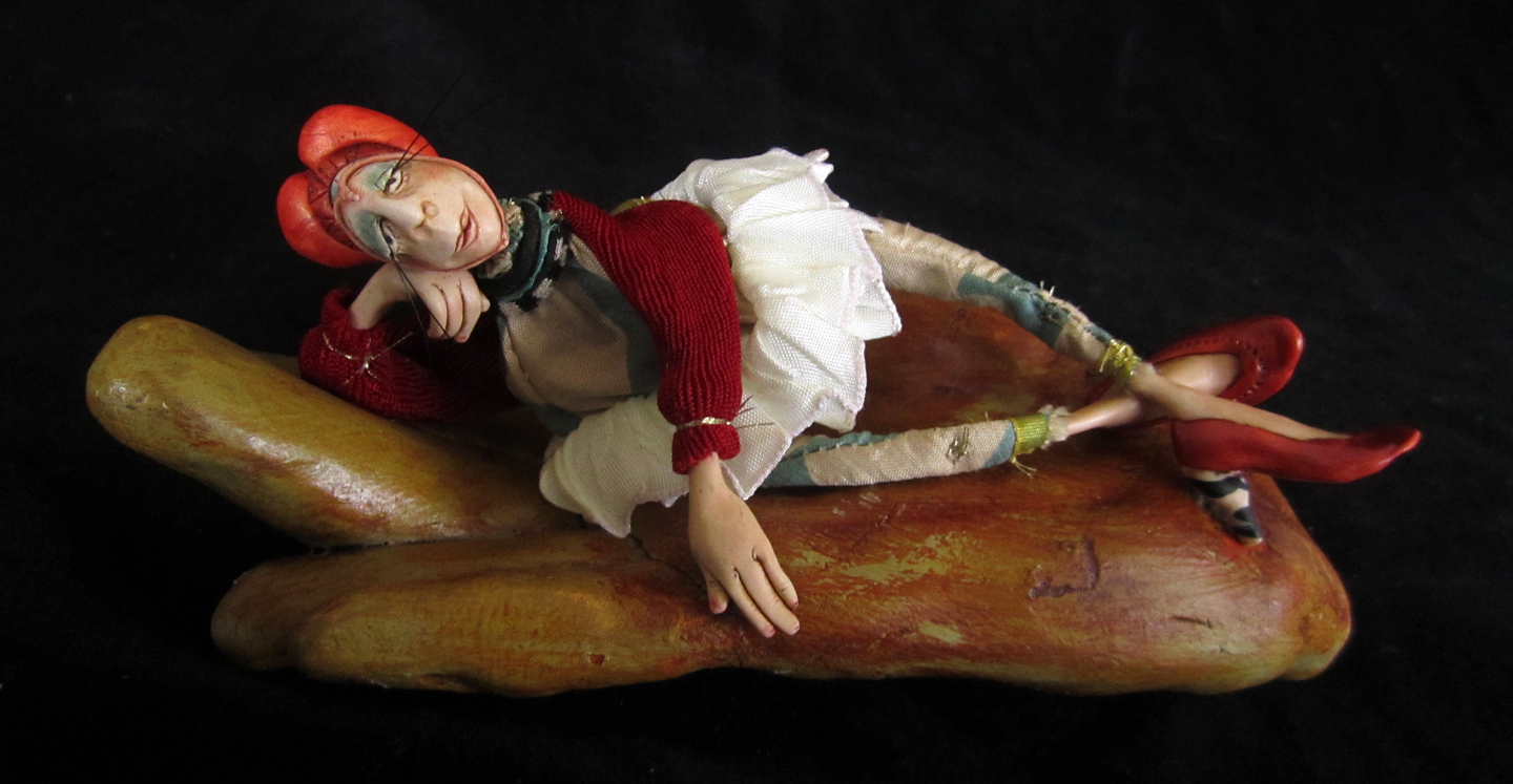 Description: This class will teach Kate’s approach to making polymer faces, hands and feet. Students will then create two cloth bodied figures, incorporating the clay parts– one soft and another sculptural–using a simple wire armature.