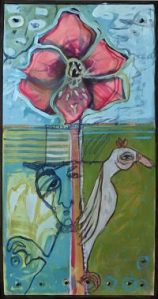 In early February I was so happy to return to our printmaking group here in Mahone Bay after more than a year of absence. I did several sweet little lino cuts of ” Amaryllis” to complete this blooming series …Â they are linoleum printed as intaglio (kind of a reverse lino print) then coloured with acrylic washes and gold leaf.