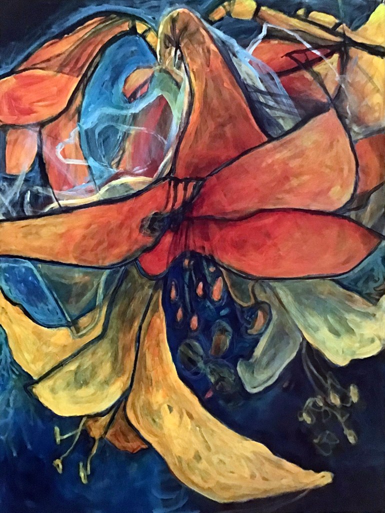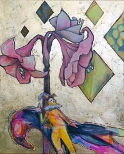This was part of a series of Amaryllis paintings I did to combat winter isolation and work on my climb back to heath. It all began with a bulb kit from the superstore that, once it began to flower, showed six huge blooms on two stocks.  I am crazy for these flowers as they take me back to my winters in Mexico when these beauties seemed to surround us on door steps, porches and balconies and the wonderful spring garden show at Juarez Park in early February.