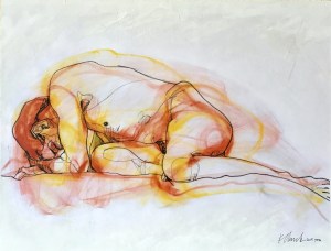high quality digital reduction print and acrylic paint applied on cradle board 12 x 16″ $175.00