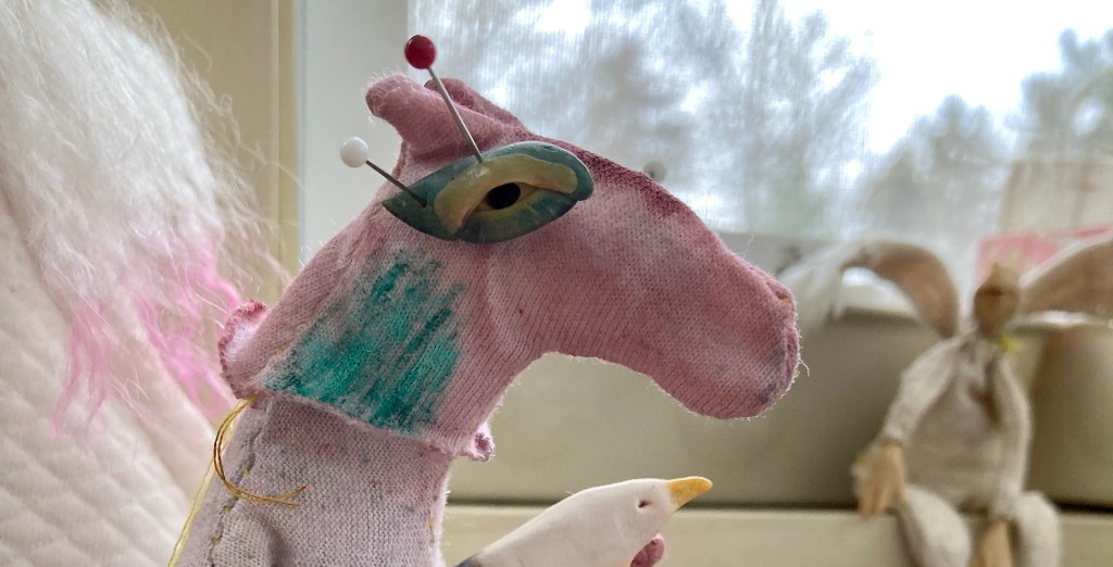 My creative work is one of my finest jewels, like the delight of figuring out how to make a tiny horse that holds humour, sensitivity and finds himself chatting with a seagull . . .