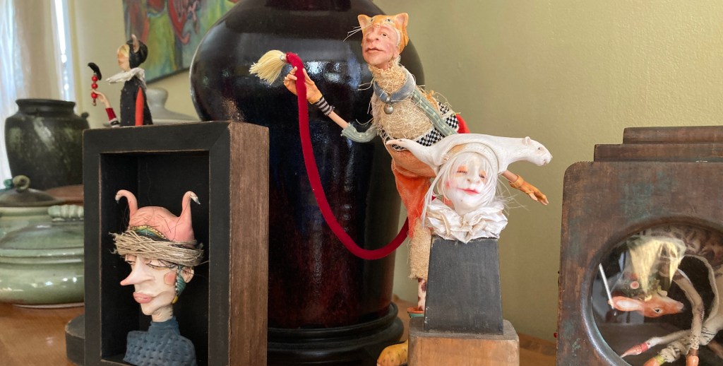 The work I have completed for this collection is very special for me. It holds not just my studio process during these many months, but elements of my years of creating. Some of the pieces were started and left waiting “to be completed” and others are assemblages using treasured faces that have been waiting for my focus and attention.